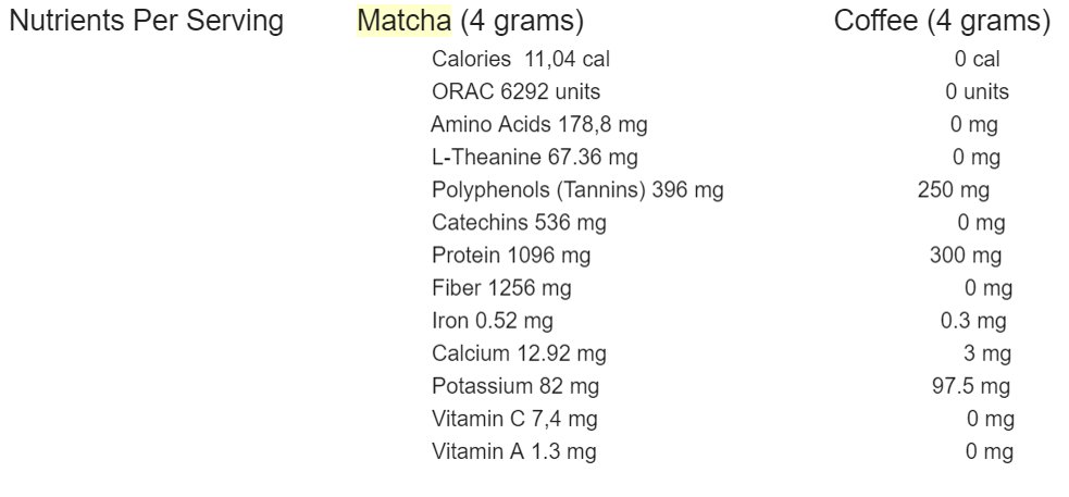 Now let’s examine Matcha Benefits over Coffee Benefits